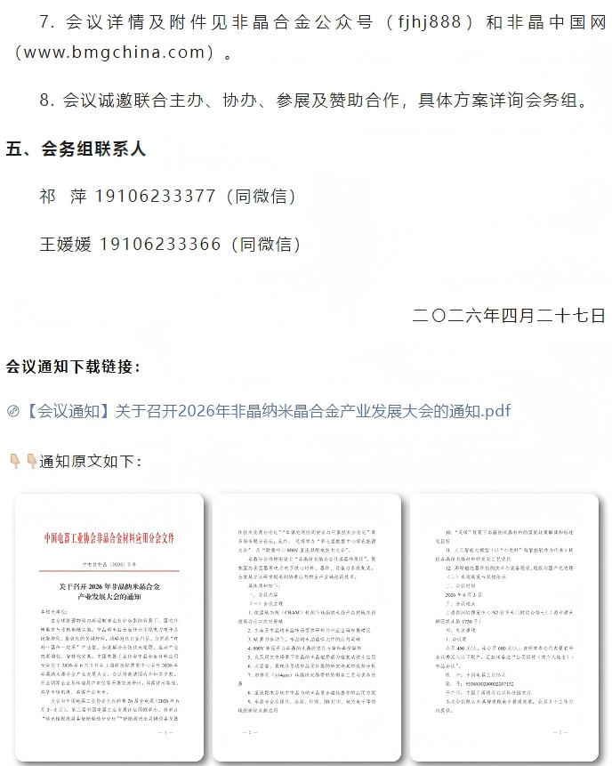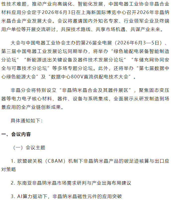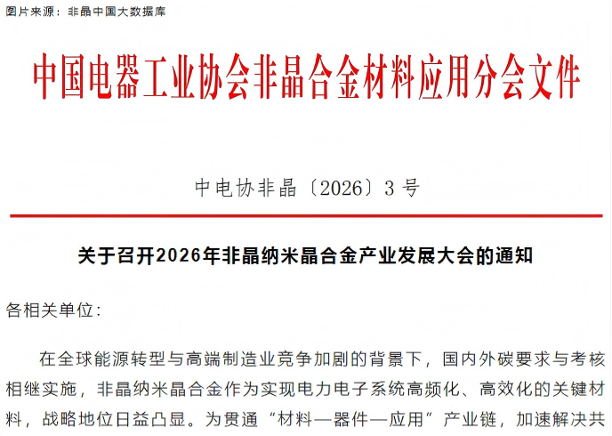关于召开2026年非晶纳米晶合金产业发展大会的通知