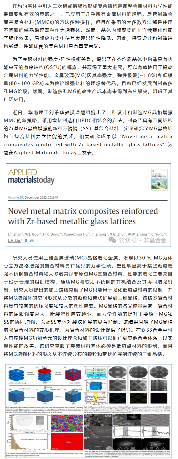 《Appl. Mater. Today》刘乐华等工作:金属玻璃晶格增强复合材料力学性能